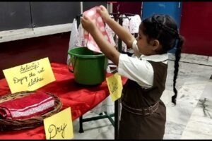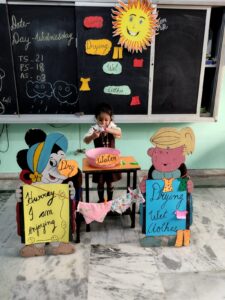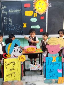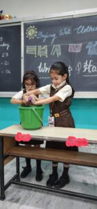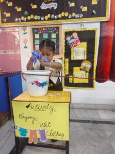 December 27, 2025The Pre-Primary wing conducted a delightful hands-on activity titled “Drying Wet Clothes” to help our little learners understand the simple yet essential process of how wet clothes become dry. Through this engaging experience, children not only learned about the drying process but also enhanced their life skills. Using clothespins to hang clothes fostered the development of fine motor skills, coordination, and independence. The joy of learning through doing was clearly visible on their happy faces!